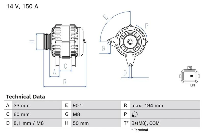 | Afstand van riemschijf naar generator (mm) | 33 |