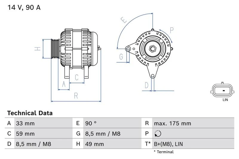 | Afstand van riemschijf naar generator (mm) | 33 |