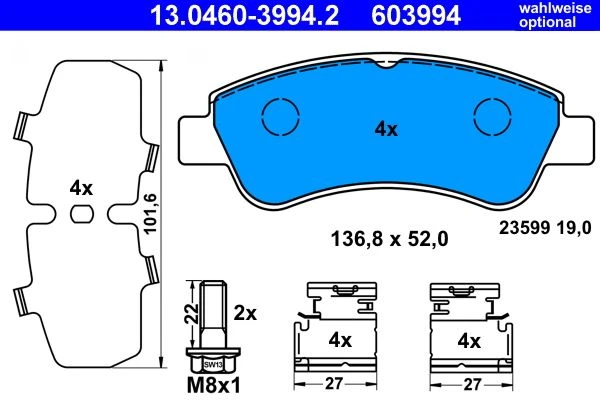 De Remblokkenset, schijfrem (13.0460-3994.2) biedt sterke en betrouwbare remprestaties door consistente wrijving en veilige remkracht te leveren. Het tijdig vervangen van uw remblokken helpt schijfschade te voorkomen, lawaai te verminderen en een optimale remwerking te behouden.