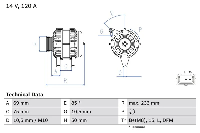 | Afstand van riemschijf naar generator (mm) | 69.1 |