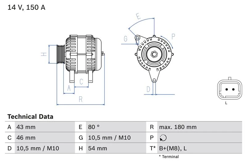 | Afstand van riemschijf naar generator (mm) | 42.6 |