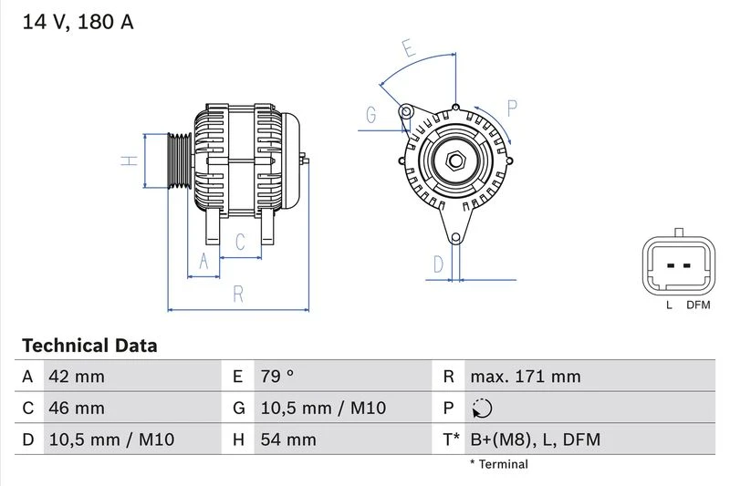 | Afstand van riemschijf naar generator (mm) | 42 |