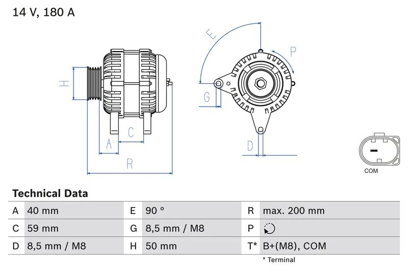 | Afstand van riemschijf naar generator (mm) | 40 |