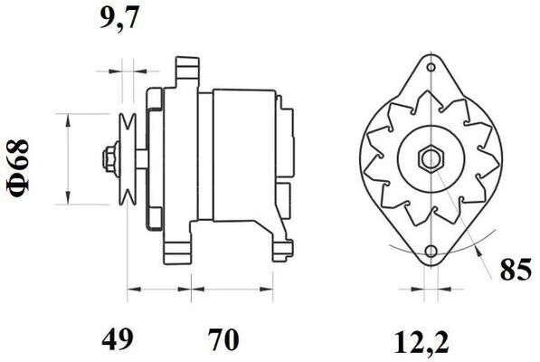 | Afstand van riemschijf naar generator (mm) | 49.0 |